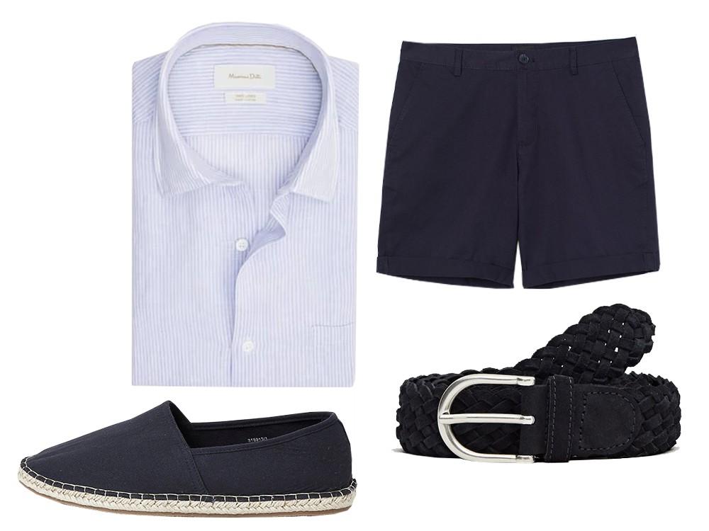Get a polished summer look with a linen shirt and shorts pairing. Sticking to a cohesive colour palette is key – don’t stray too far from reliable navy.