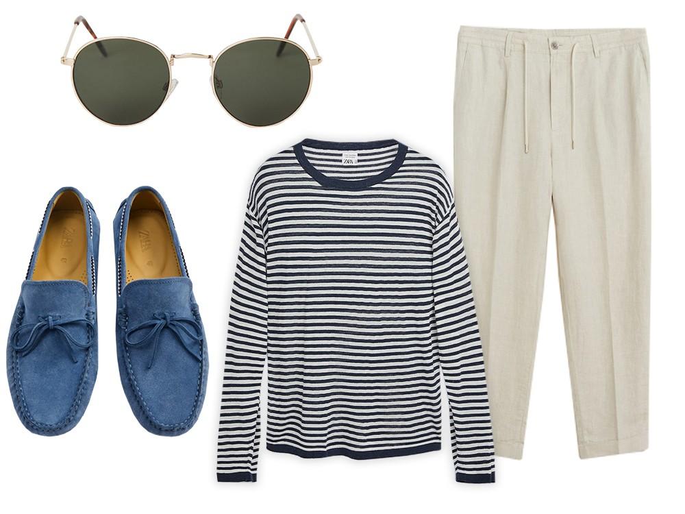 Channel your inner Parisian in a striped Breton, chinos and loafers. We love the relaxed fit of these Mango linen pants – roll them up and show off some ankle for extra style points.