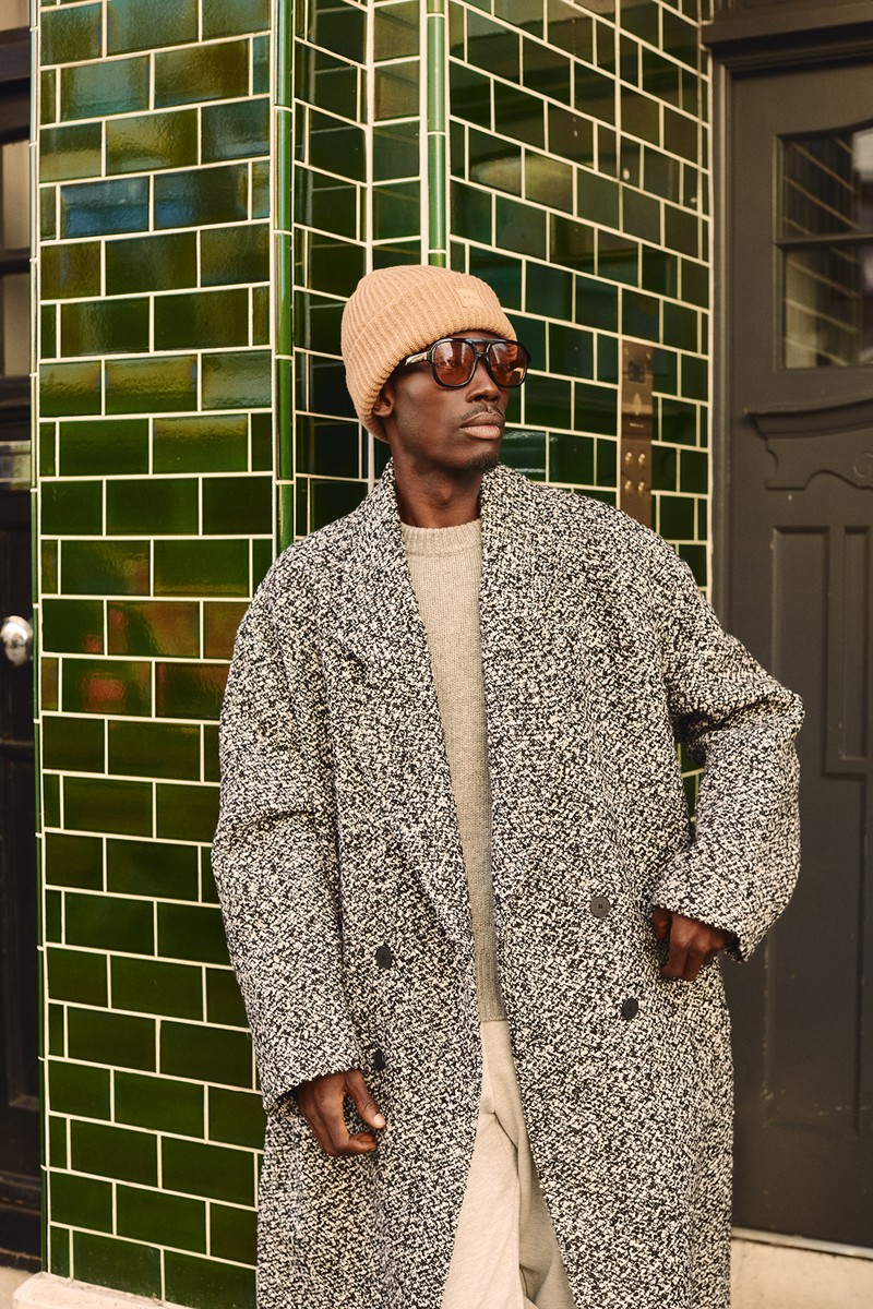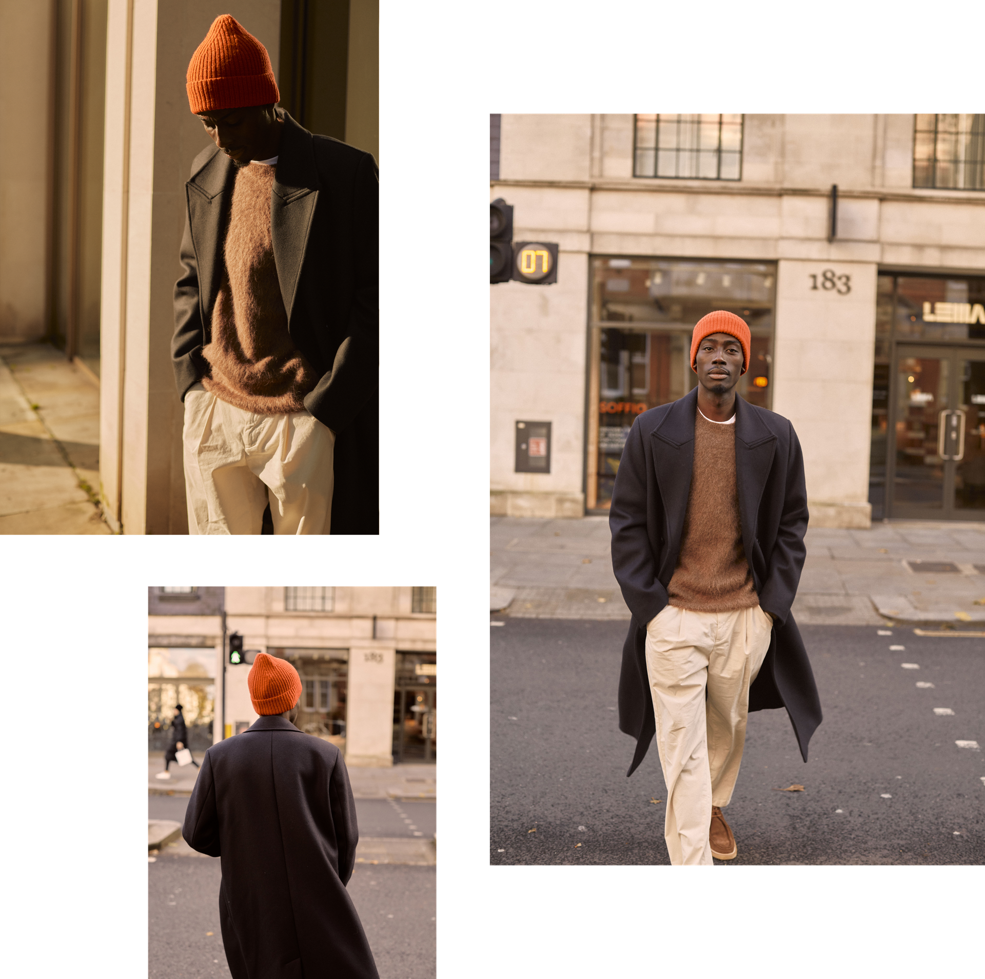 Double-Breasted Coat, £169 | Zara, Cashmere Jumper, £159 | Arket, Jogger Waist Cotton Trousers, £35.99 | Zara, Happy 2-Pack Mens Socks, £15 | Falke, Michelle Logo Patch Wool Beanie, £114 | A.P.C , Air Force 1 Low Retro QS Leather Sneakers, £130 | Nike, High Bridge Fit Sunglasses, £140 (was £280) | Gucci
