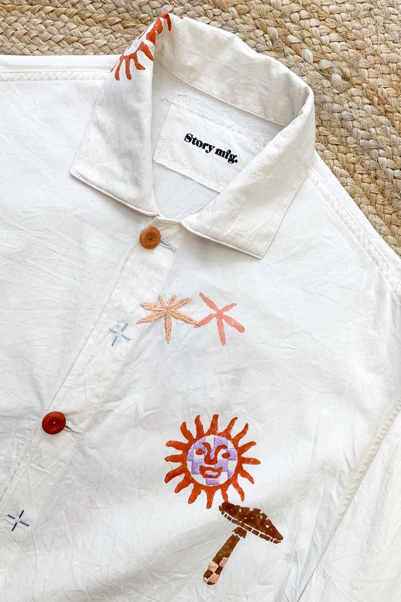 Whether you’re headed on holiday or chilling out in the city this summer, Story Mfg is a name to know. This Brighton brand is all about moving slowly. Husband-and-wife team Saeed and Katy Al-Rubeyi use embroidery, natural dyes and age-old craftmanship to elevate the relaxed shapes of their loose-fitting trousers and hero short-sleeve shirts. Everything is built to last from natural cottons and linens, and nothing goes unused – offcuts might be turned into clothing tags or even fertiliser.