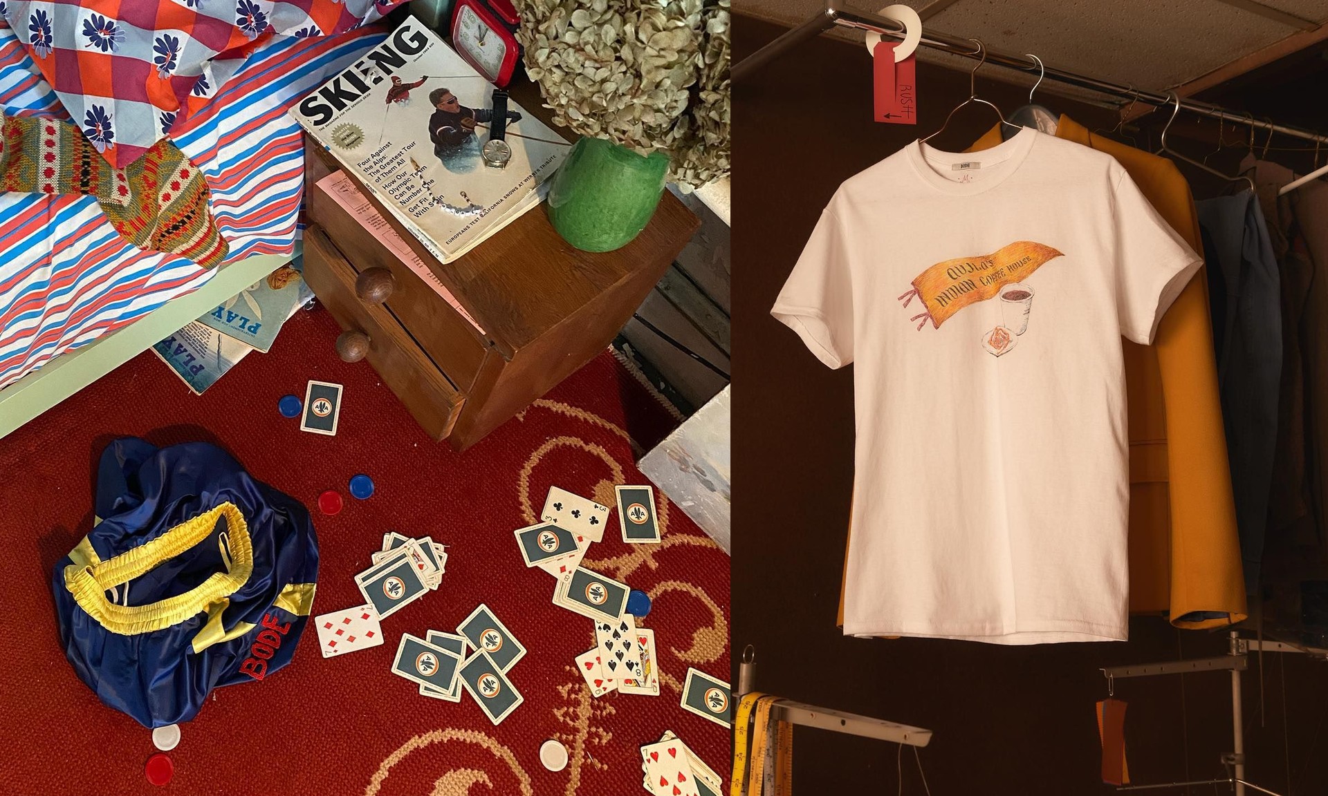 Born on the Lower East Side in 2016, Bode has become a staple brand for in-the-know New Yorkers like Jeff Goldblum. Designer Emily Adams Bode Aujla draws on her vintage sensibility and eagle eye for upcycling to create luxury menswear that’s made ‘grandpa chic’ cool again. From the crochet shirts to the hand-painted pieces, look for unique patterns and unusual fabrics that give timeless workwear silhouettes a new twist. All the materials she uses have been repurposed – your new trousers might have been a bedsheet, a tea towel, a grain sack or even an oven mitt.