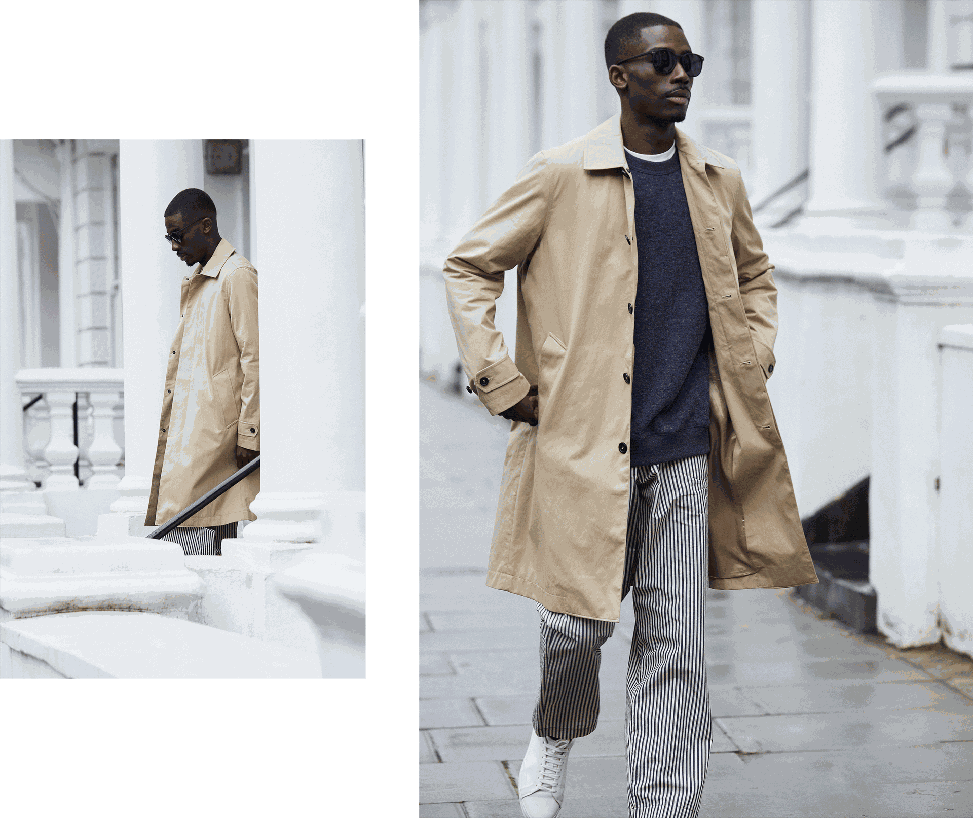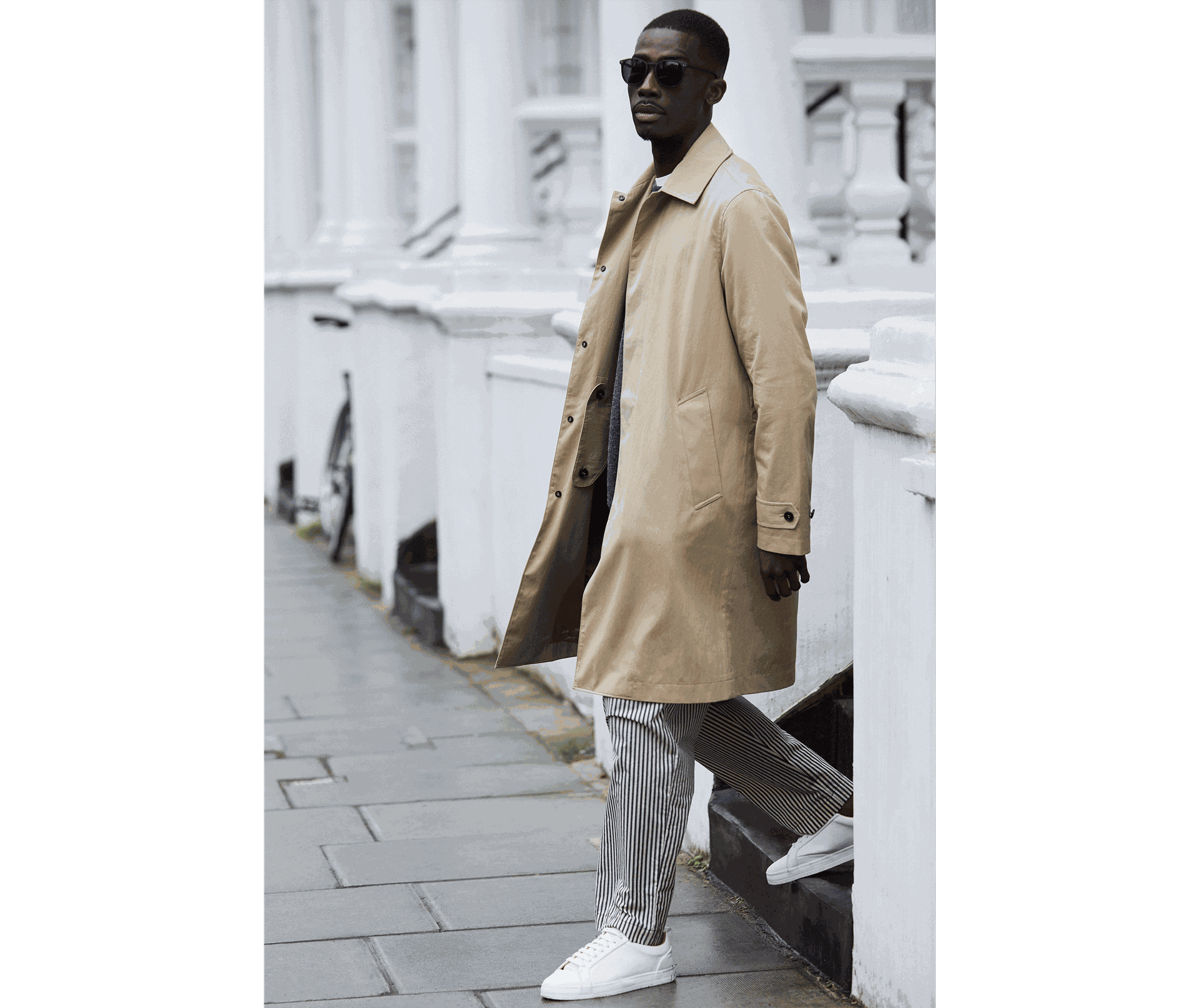 The key to wearing a trench well is to keep the silhouette simple and sharp. Go for a classic beige and size up for a loose fit. Wear with navy and grey marl for an easy, timeless colour combo.