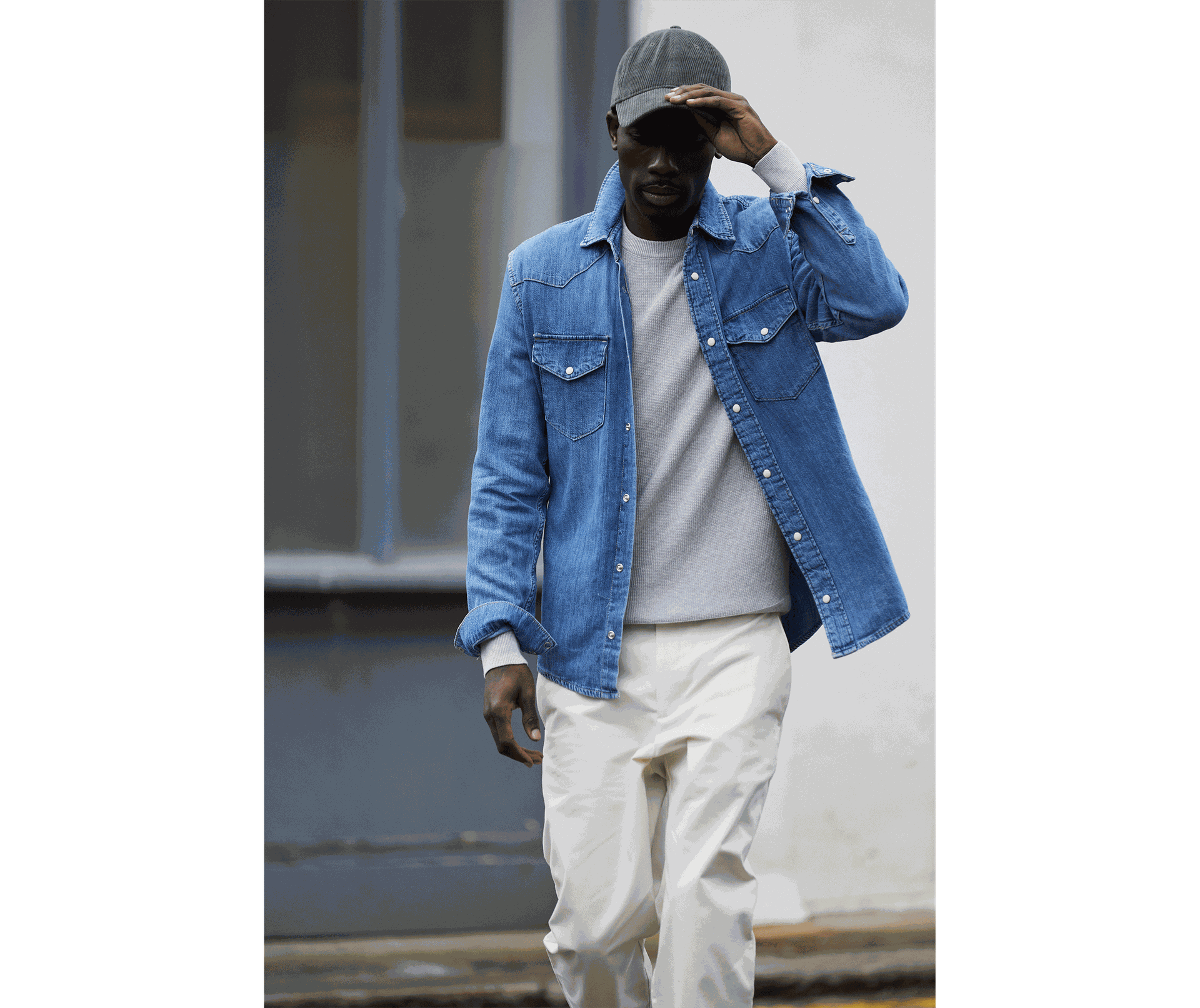 We can’t think of a spring when a denim shirt wouldn’t have been on this list. It’s a piece that just never goes out of style. We’ve gone with a medium wash for styling over tees, under blazers or shackets and popping out beneath sweatshirts.