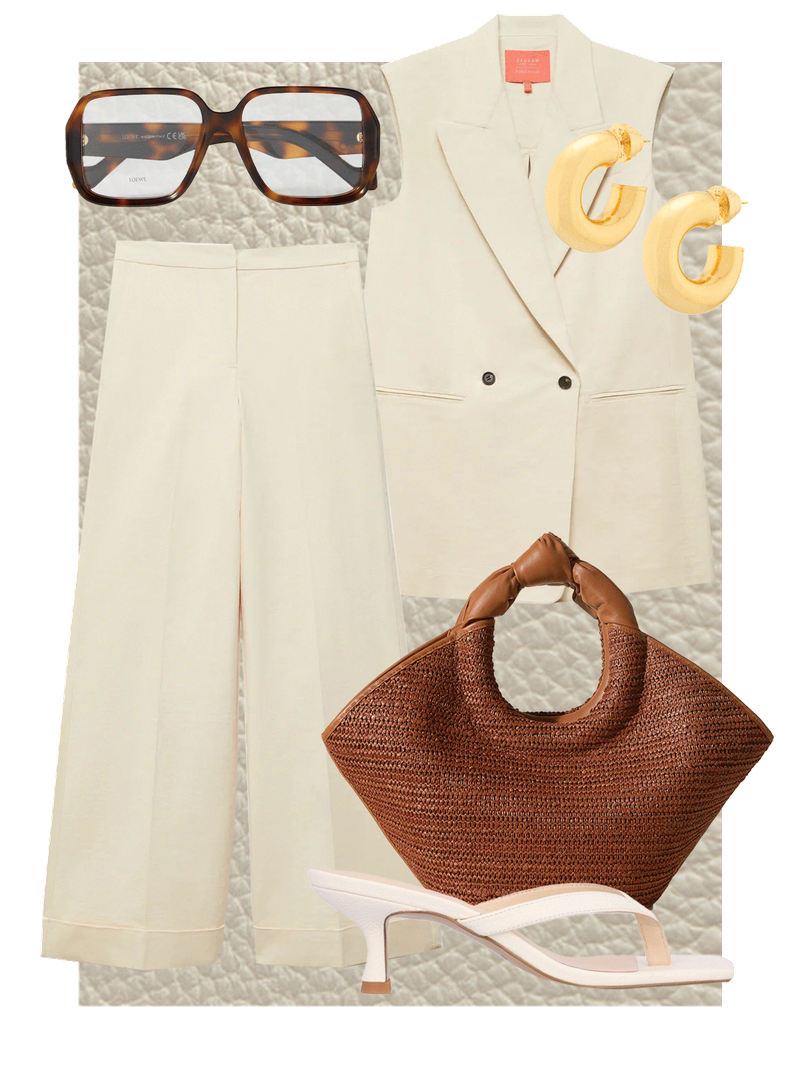 This look has smart-casual appeal and some serious versatility. Combining comfort and style, it’s a great choice for coffee, brunch or running errands. The button-down shirt in a muted olive green adds a touch of sophistication while maintaining a relaxed vibe. I’m a huge fan of this shoe design, which makes the outfit look well-put-together without being overly formal. The sunglasses add a cool, laid-back element while tying all of the earthy tones together.