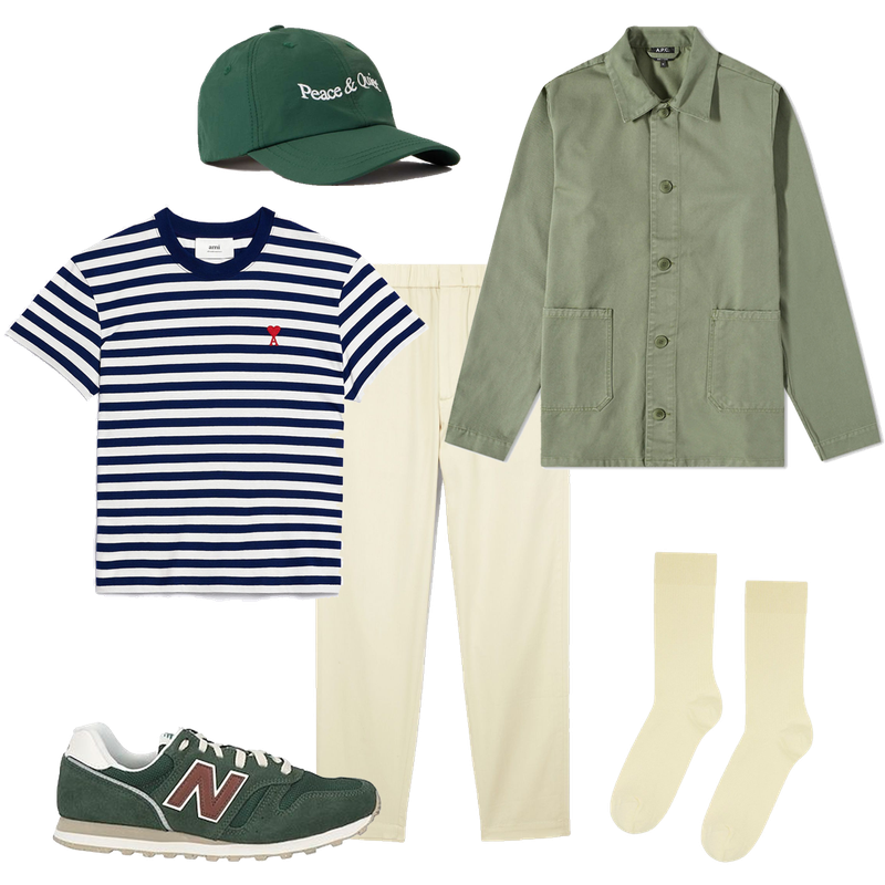 If you’re willing to push the boat out, pale yellows look seriously cool with khaki. @AimeLeonDore nailed the combo with its SS23 campaign: pull-on khaki linen trousers with a simple white tank and a pale yellow short-sleeve shirt. Add fisherman sandals and a bucket hat if you’re brave enough – and thank ALD later.