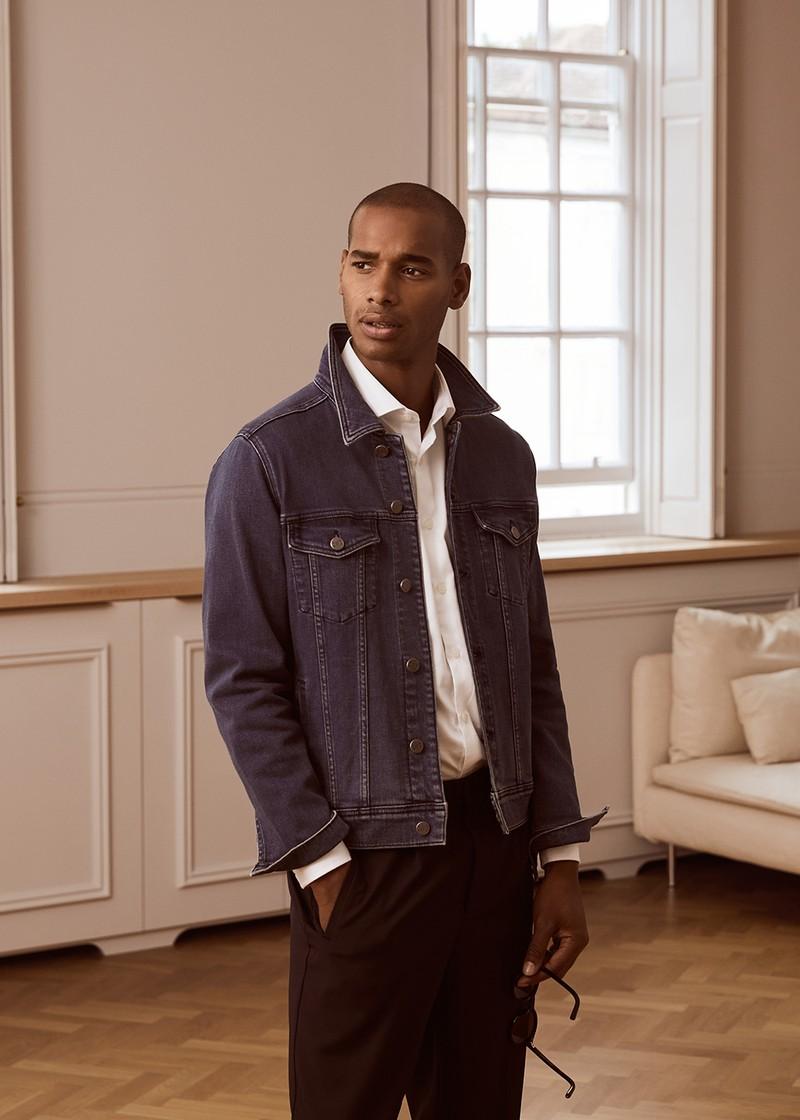 Dark denim jackets are a failsafe off-duty look, and we love this smart version paired with a crisp shirt for balance. Just add joggers and go.