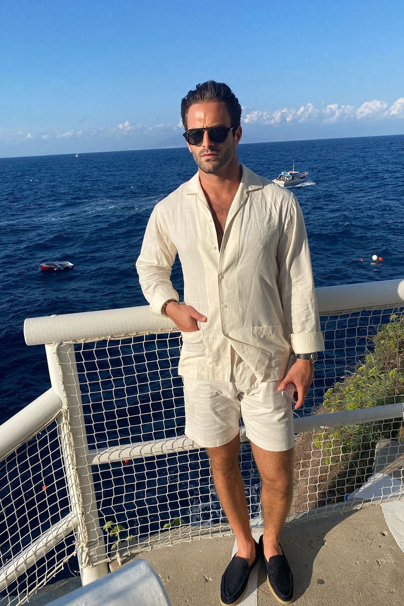This is where the lines between swimming trunks and shorts can be conveniently blurred so you can effortlessly transition from ocean bathing to afternoon drinking by wrapping yourself in a towelling polo, minimally buttoned knitted shirt or linen tee. Think Jude Law in The Talented Mr Ripley.