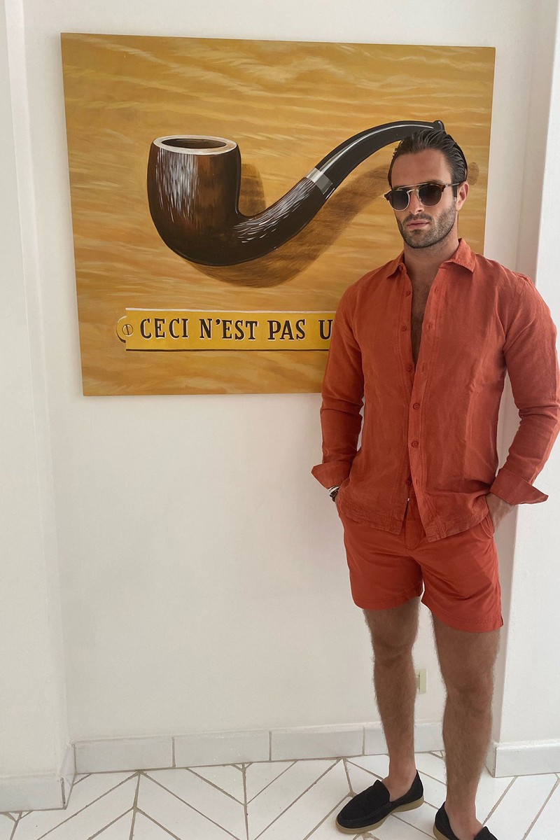 So, the many ways in which British men habitually get shorts wrong… First, there’s no call for shorts when it’s not hot – there are few sights more tragic than shivering, knocking knees in the drizzle. Our next national-level issue is not wearing proper shorts. By proper shorts I mean tailored or slim fit styles that finish above the knee. Jersey fabric shorts are only for wearing at home. Particularly if they’re tight. Nobody wants to see that. Another one: bad pairings. Running shorts with a shirt is never okay.