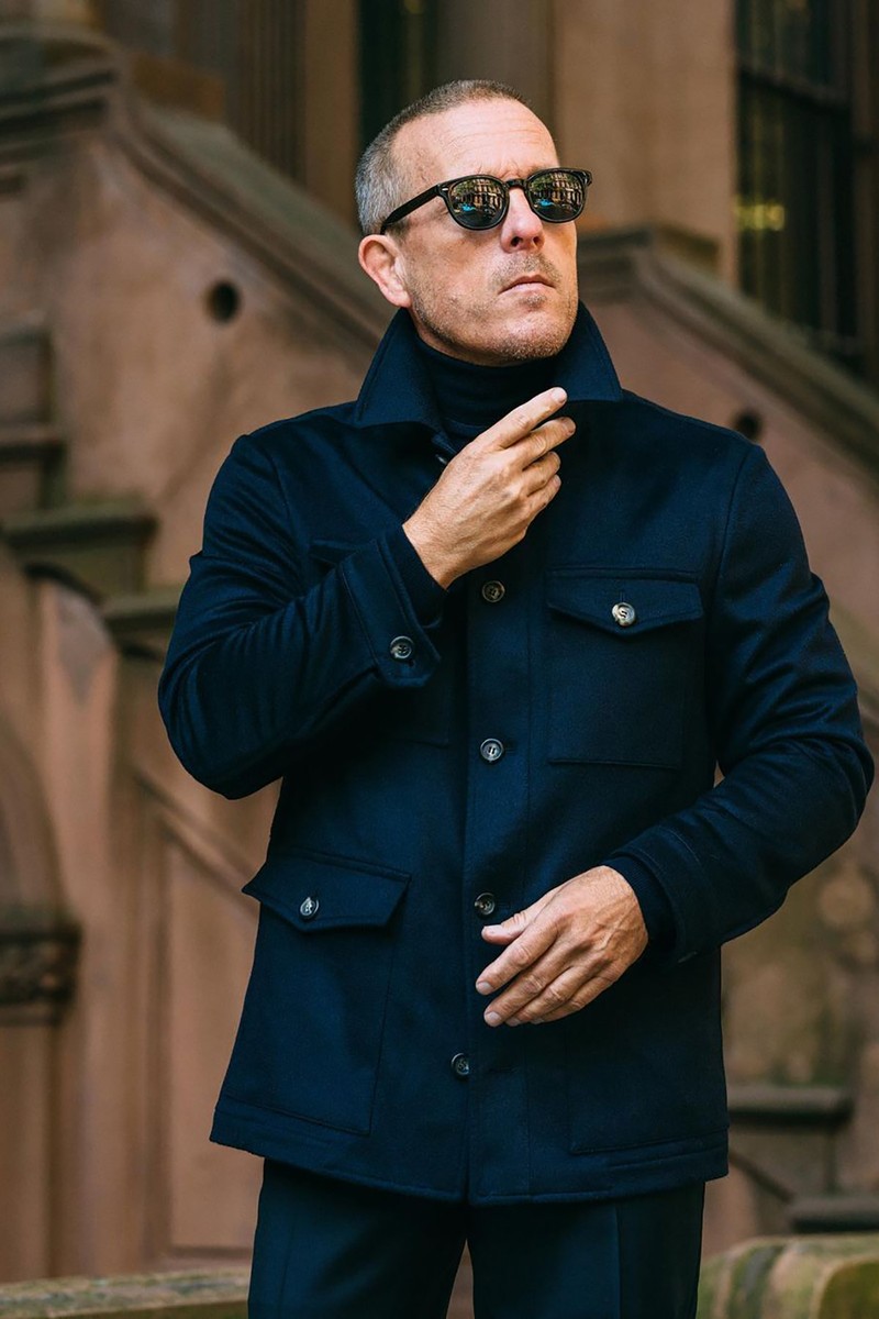I have always been critical of my own style. I used to do more of my own outfits but I would always find fault! I wear a lot of navy today, with the occasional grey. I find these are colours that work well for me and help me to blend into the background when I am out shooting. Navy is not as severe as black but still chic. Also, fit is everything. A suit could be $500 or $5,000 but, if it doesn’t fit right, then it just doesn’t work.