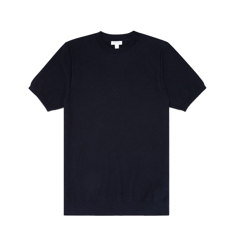 This summer I’ve enjoyed wearing a fine-knit T-shirt on its own and beneath overshirts. The textured knit and rib trims give an elevated look which feels a little more dressed up than a classic tee – without compromising on comfort. It pairs nicely with a range of outerwear too.