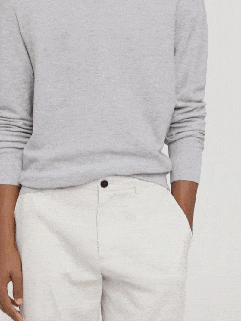 A grey knit works for off-duty looks and smarter combos alike. Wear this one with joggers and a puffer for now. Come spring and summer, swap in a cream pair of cropped chinos or shorts.