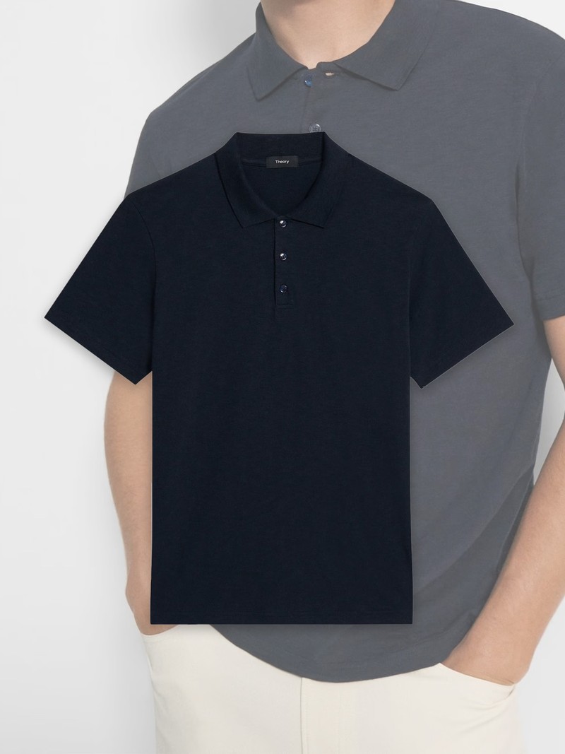 Few things work harder than a staple polo. Wear this one under knits and jackets now or on its own for summer. Navy is a no brainer here.