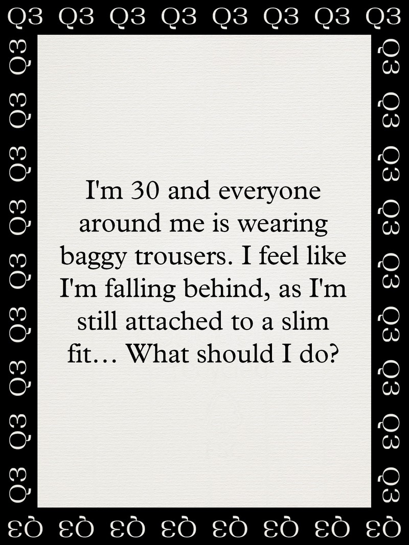 So hold firm and stick to the enduring principles of style: choose timeless garments that prioritise your body type and personal brand. Don’t fret about keeping up with the cool kids if that means swerving out of your lane. You can always keep the slim fits in the wardrobe until the fashion tide turns and silhouettes are pared back once more.
