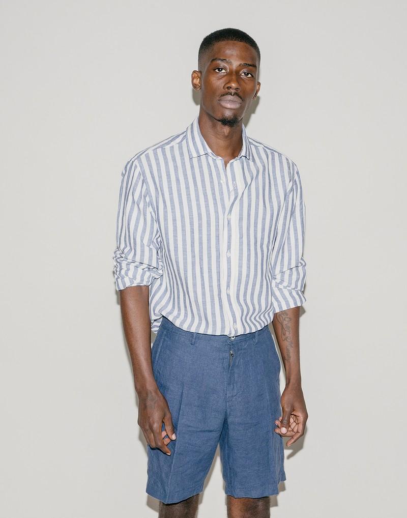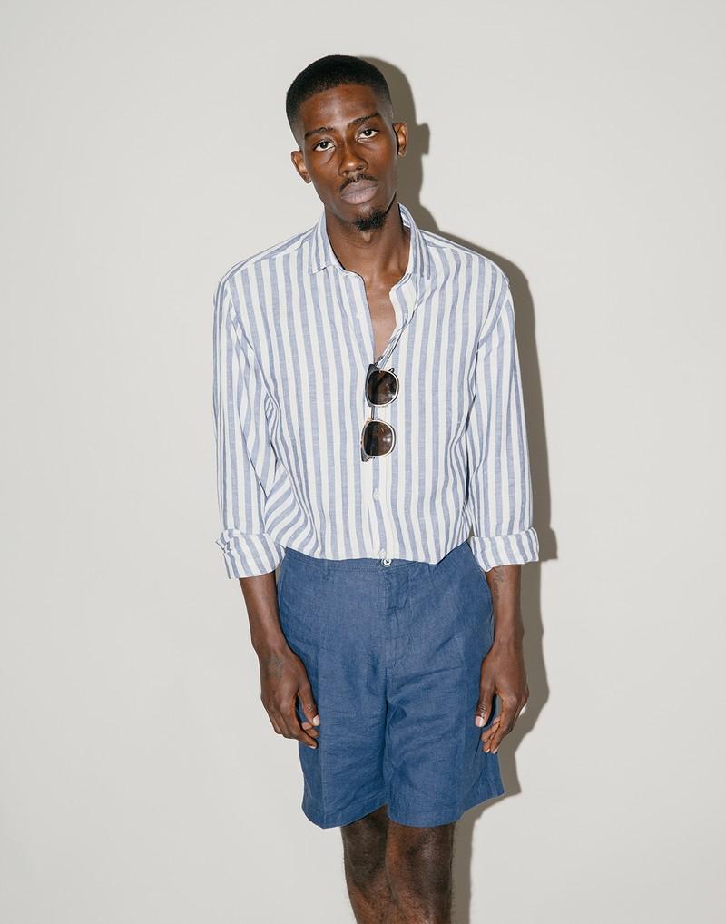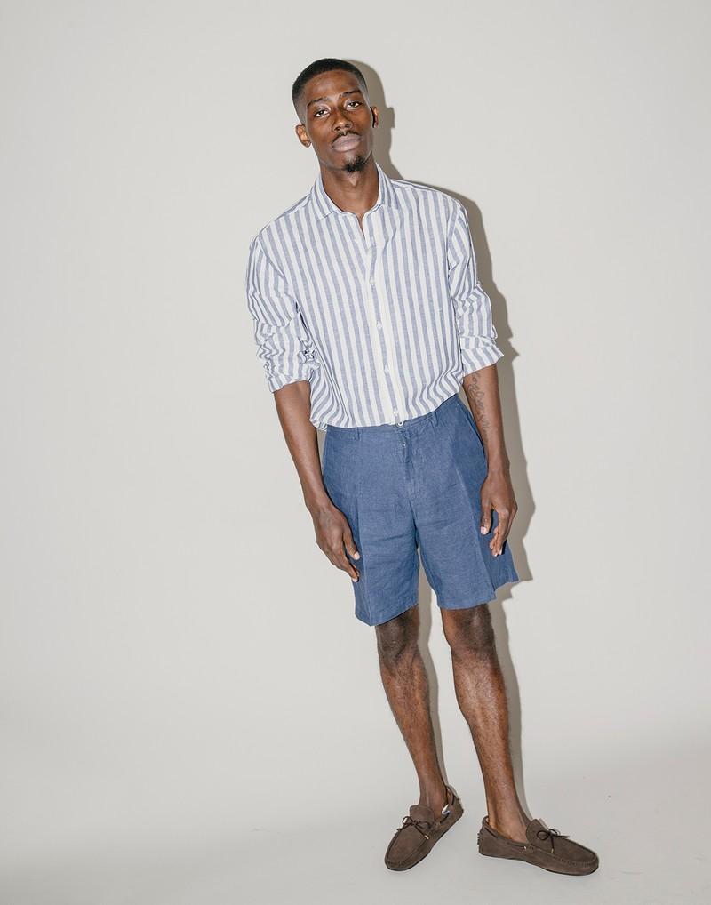 Get that cool-meets-smart hybrid right by combining a relaxed linen shirt and shorts. This length short is particularly flattering.