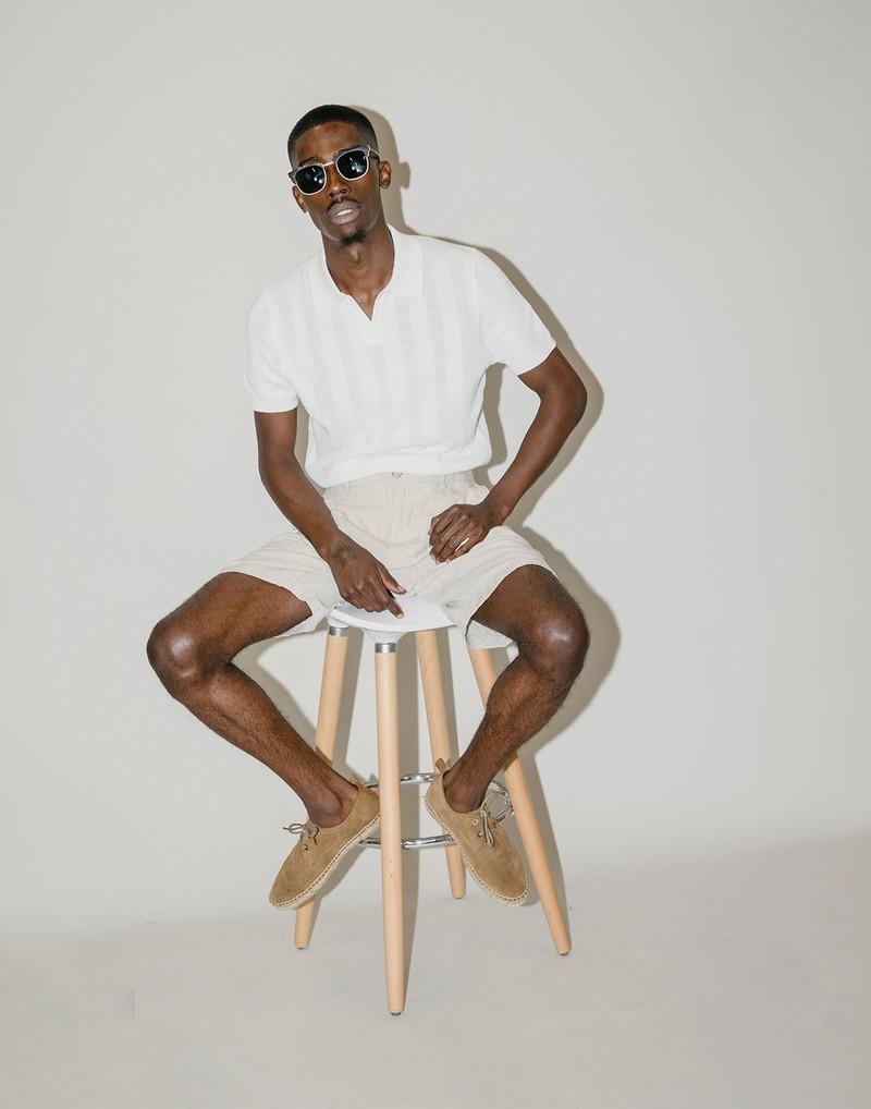 Another shorts look, this time with a vintage feel. Hark back to the 70s with a knitted polo, but keep the look fresh with a neutral colour palette and slick sunnies.