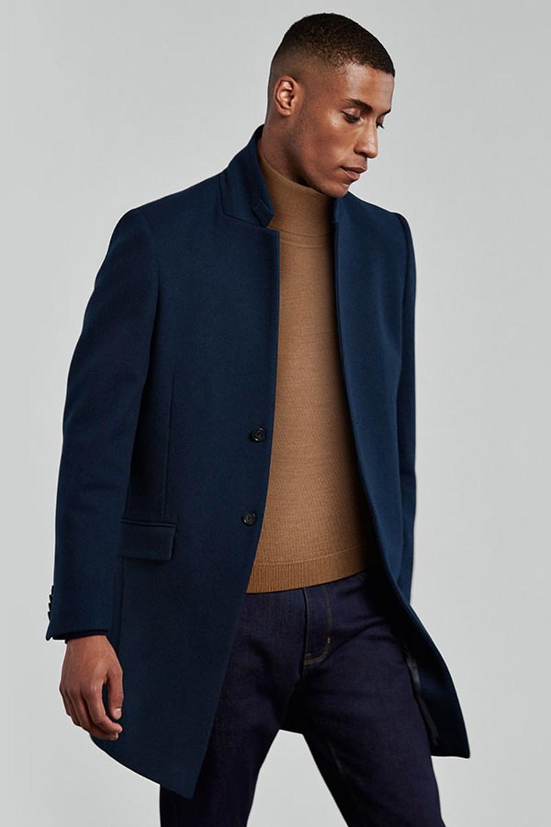 AN OVERCOAT IS BEST IN A DARK COLOUR AND CUT CLOSE TO THE BODY. WEAR WITH TAILORED TROUSERS AND A CASHMERE ROLL NECK FOR A STYLISH TAKE ON A CLASSIC LOOK.