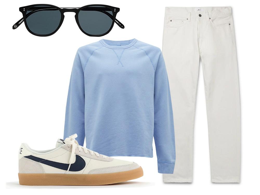 Put a casual, everyday spin on the look – a sweatshirt and trainers make white jeans feel almost incidental.