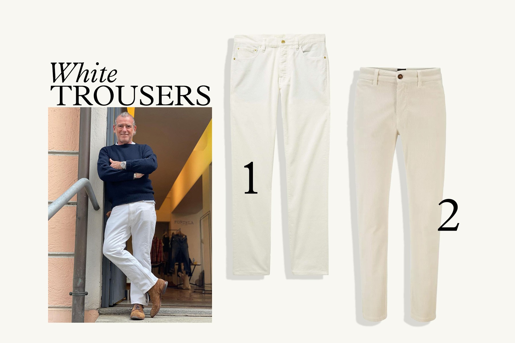 White trousers have traditionally been considered impractical, inappropriate or ill-advised – and sometimes all of the above. I couldn’t disagree more. Corduroy styles are my favourite. Whether the wales (the ribbed lines that make up this quintessential cool-weather fabric) are narrow or wide, they look great in white and aren’t any less equipped to keep you warm than corduroy in any other colour. White denim is another shrewd choice for autumn – for inspo, check out Alessandro Squarzi, an Italian style icon and founder of Fortela Signore.